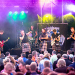 Von den musikalischen Stilen hin- und hergerissen wird der Zuhörer, wenn die Folkrockband „Flannery“ ihr Set präsentiert. Im Zentrum: der Dudelsack, dem Denny Myles die wildesten Töne entlockt.